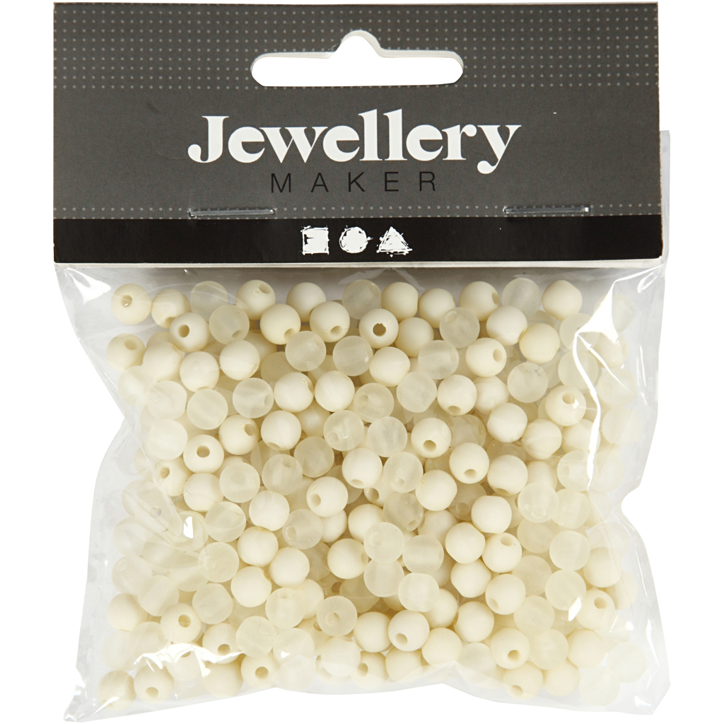Mati pinnaga ümmargused plastmassist helmed – Poolläbipaistvate ja ühevärviliste mattpinnaga helmede segu.