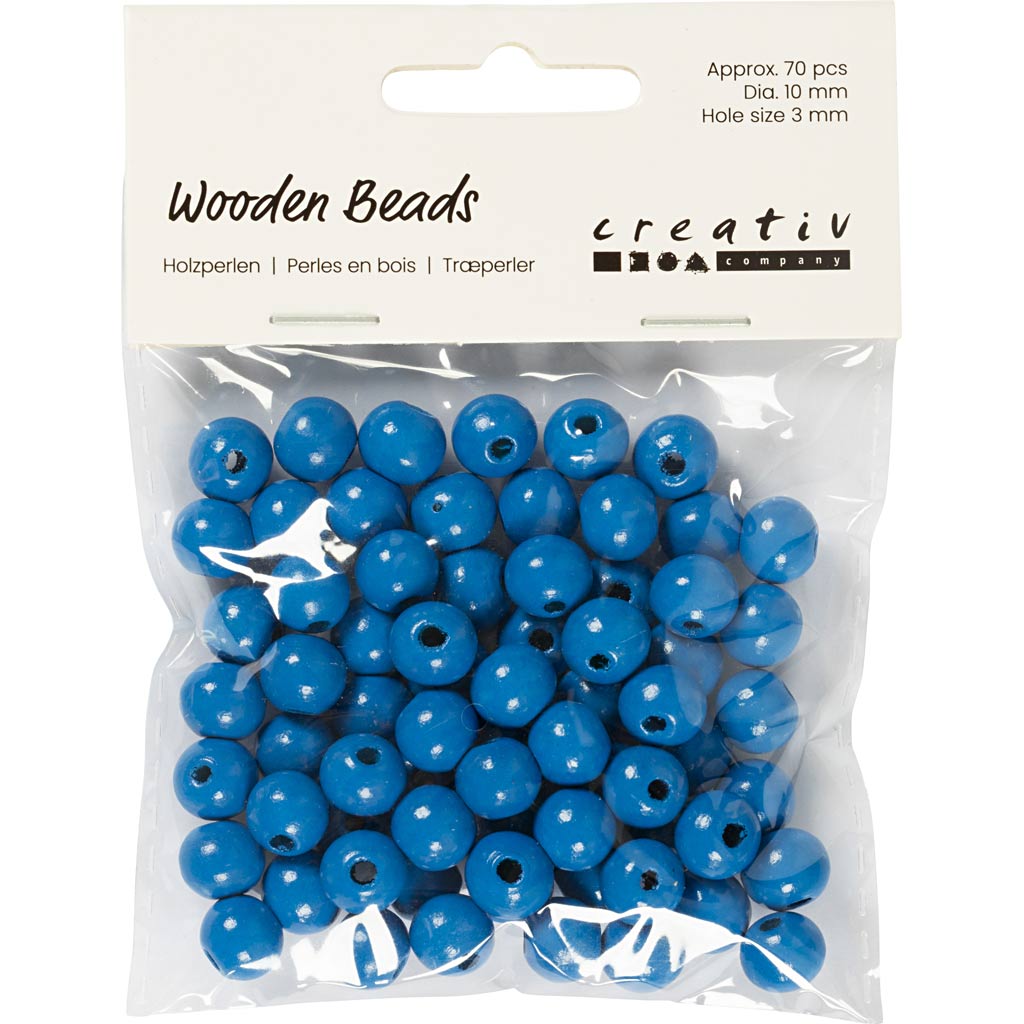 Puidust helmed, diameeter. 10 mm, augu suurus 3 mm, ca. 70 tk, sinine, 20 g/ 1 pakk