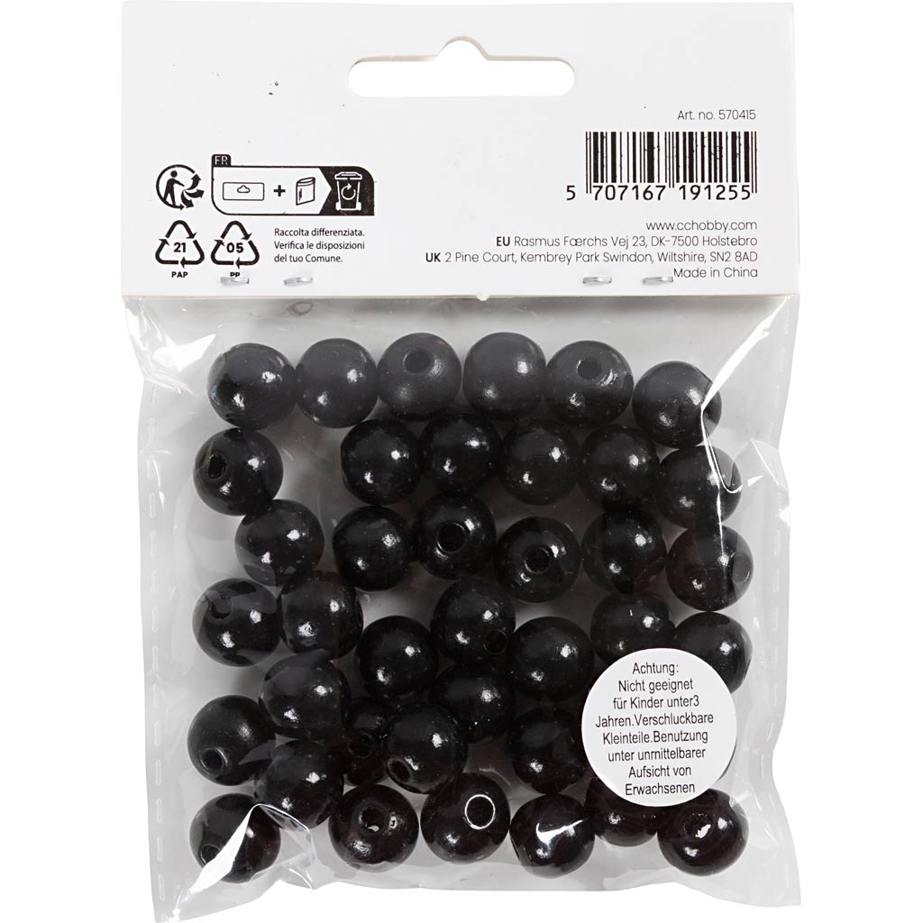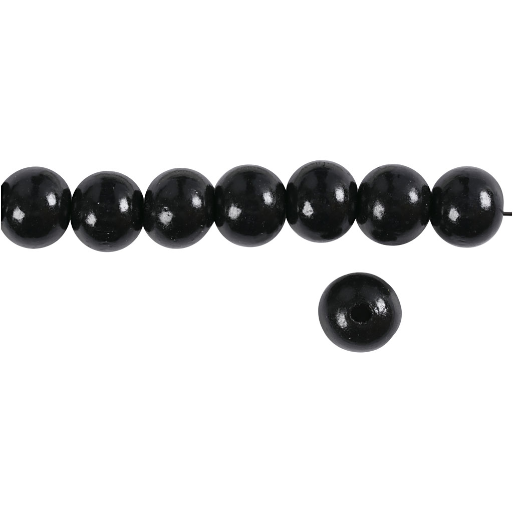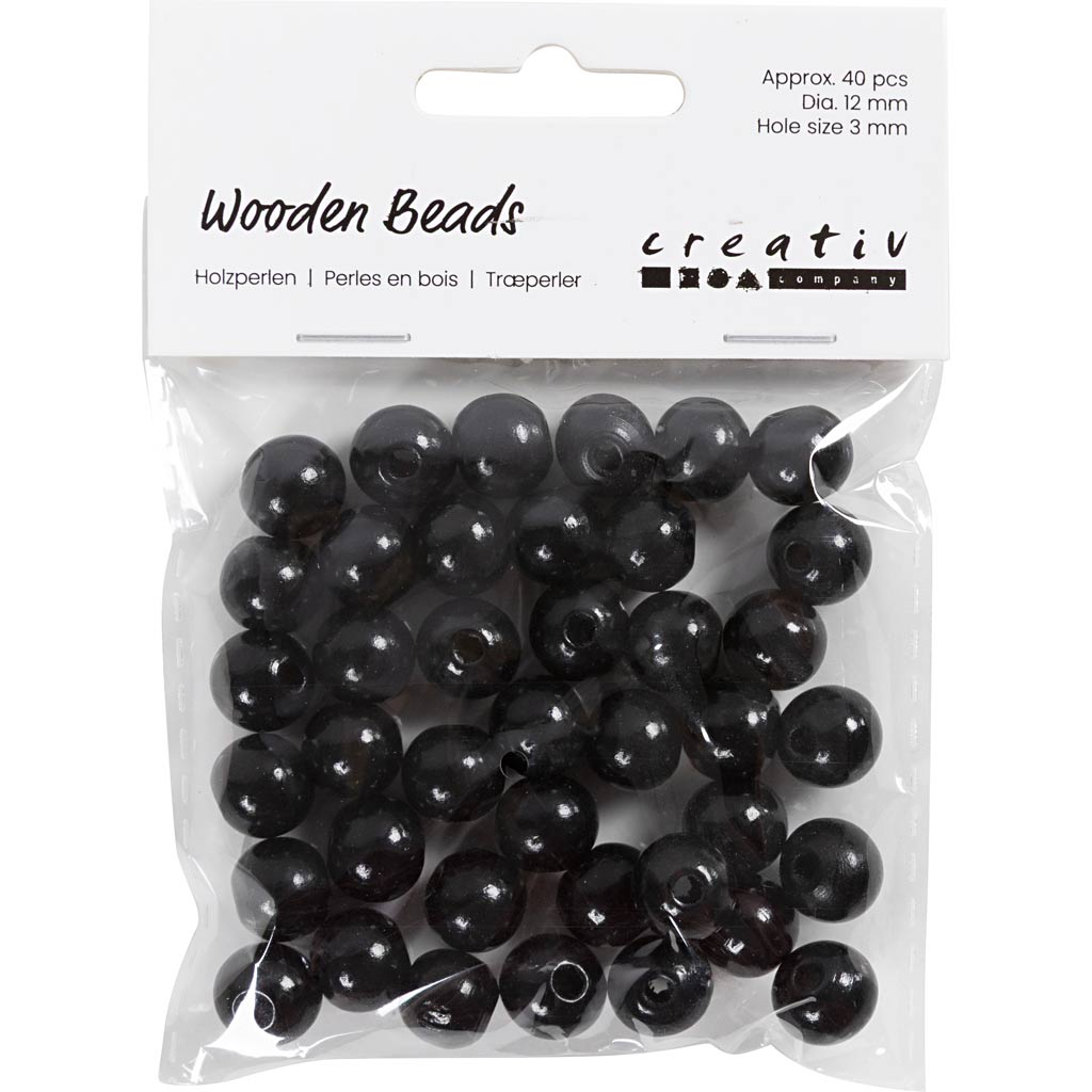 Puidust helmed, diameeter. 12 mm, augu suurus 3 mm, ca. 40 tk, must, 22 g/ 1 pakk