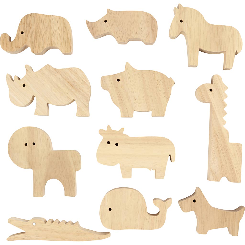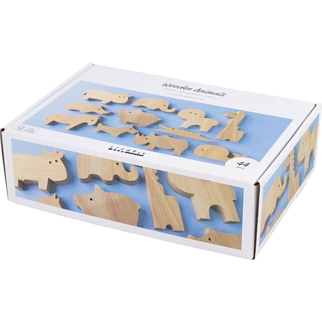 Puidust loomad, talu ja safari, H: 3-14,5 cm, paksus 2 cm, 44 tk/ 1 pakk