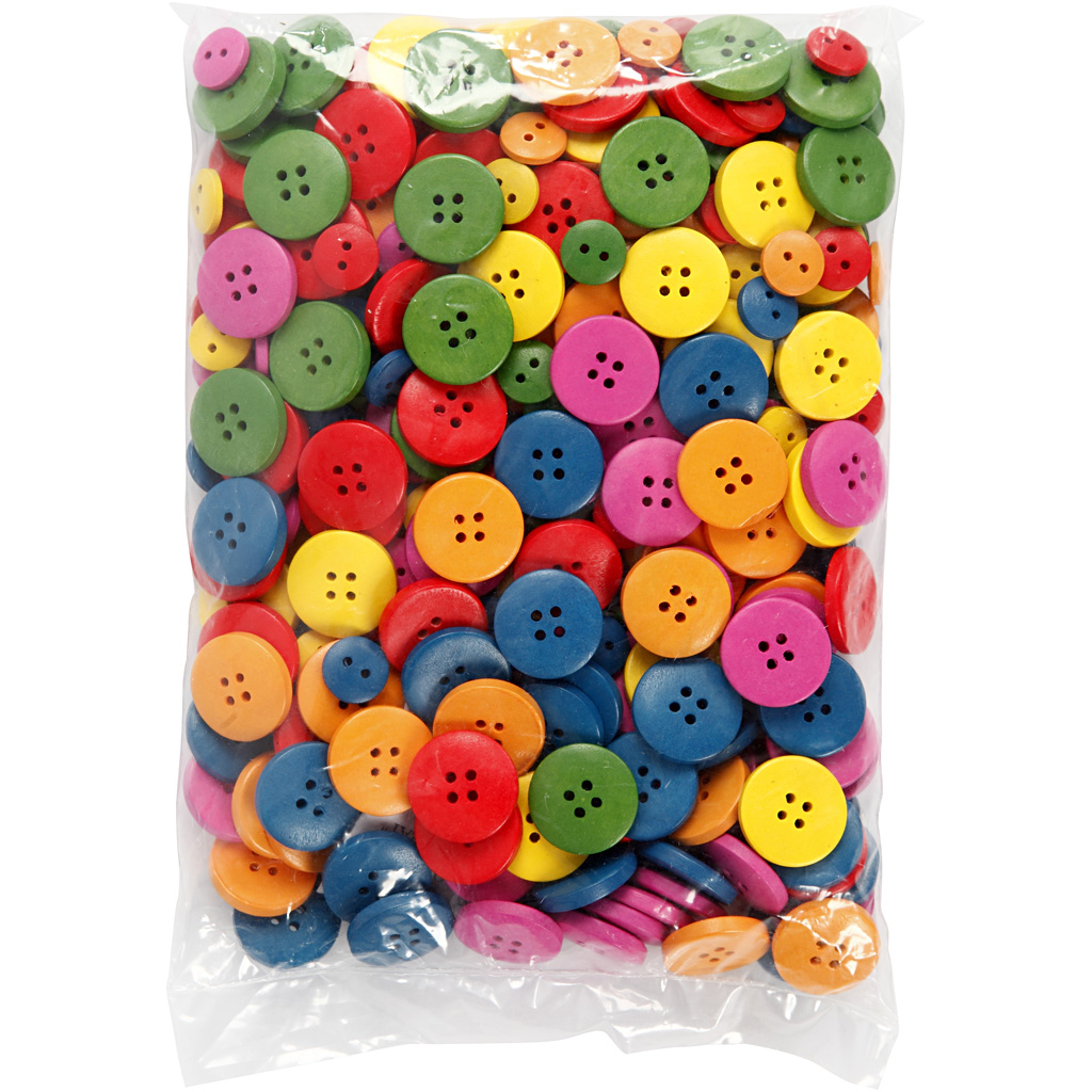 Puidust nööbid, diameeter. 12-20 mm, 2-4 auku, värvivalik, 360 tk/ 1 pakk