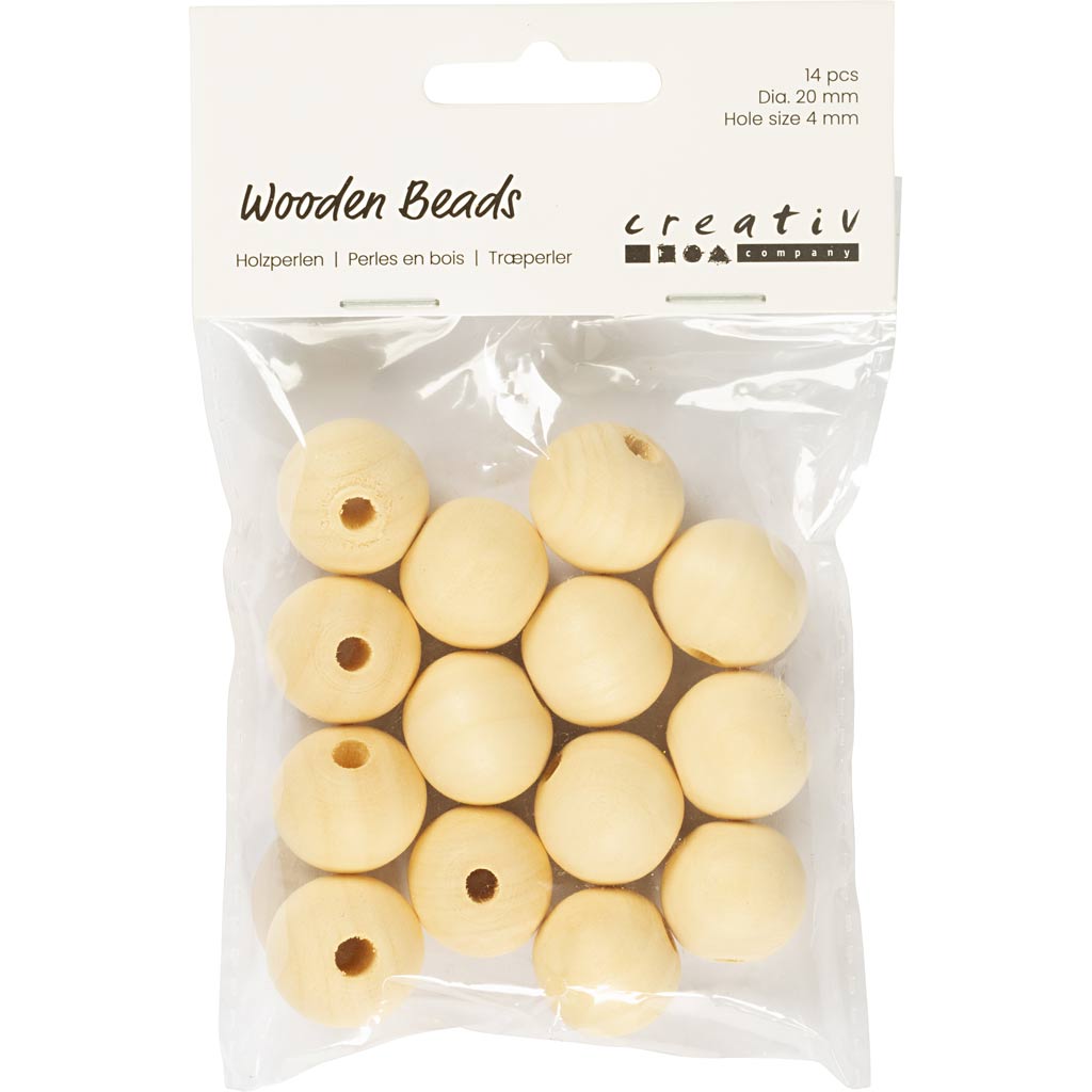 Puuhelm, diameeter. 20 mm, augu suurus 4 mm, 14 tk/ 1 pakk