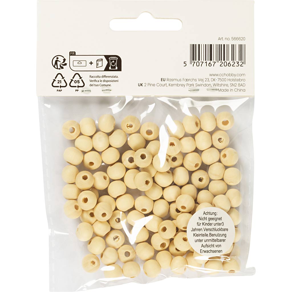 Puuhelm, diameeter. 8 mm, augu suurus 2 mm, 100 tk/ 1 pakk