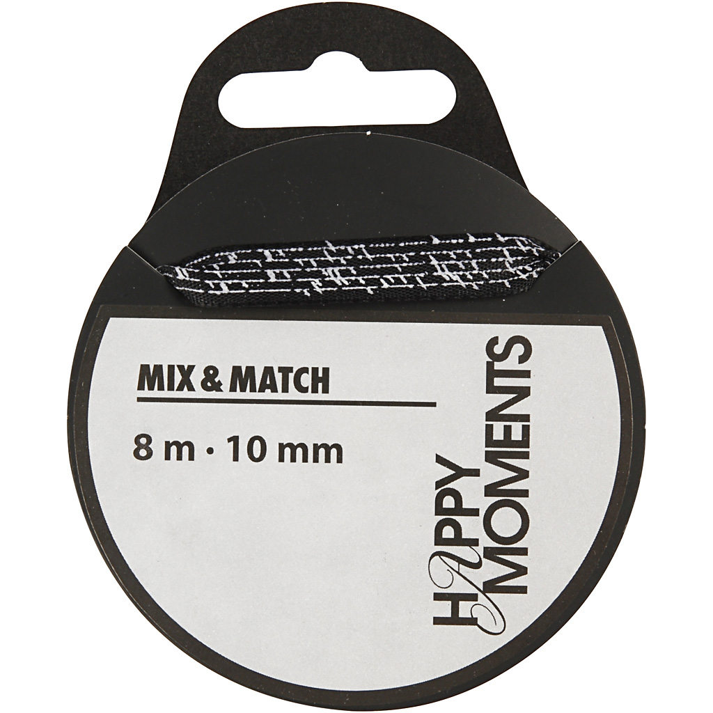 Satiinpael trükiga, W: 10 mm, must, 8 m/ 1 rull