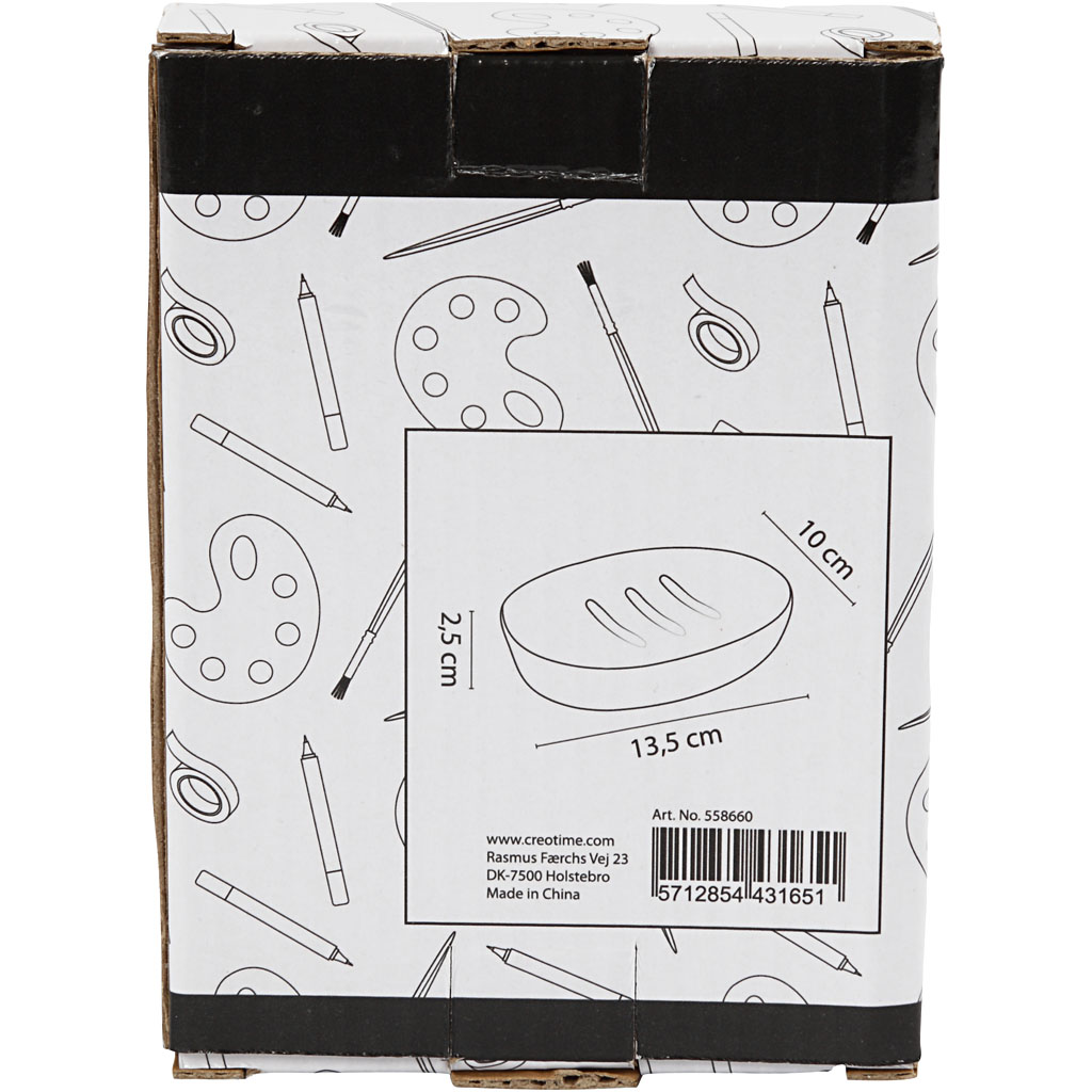 Glasuuritud keraamiline, ovaalne seebinõu, mille pind on läikiv. Seebiootel on põhjas sooned ja lame serv, mida on lihtne kaunistada näiteks klaas- ja portselanimarkeritega.