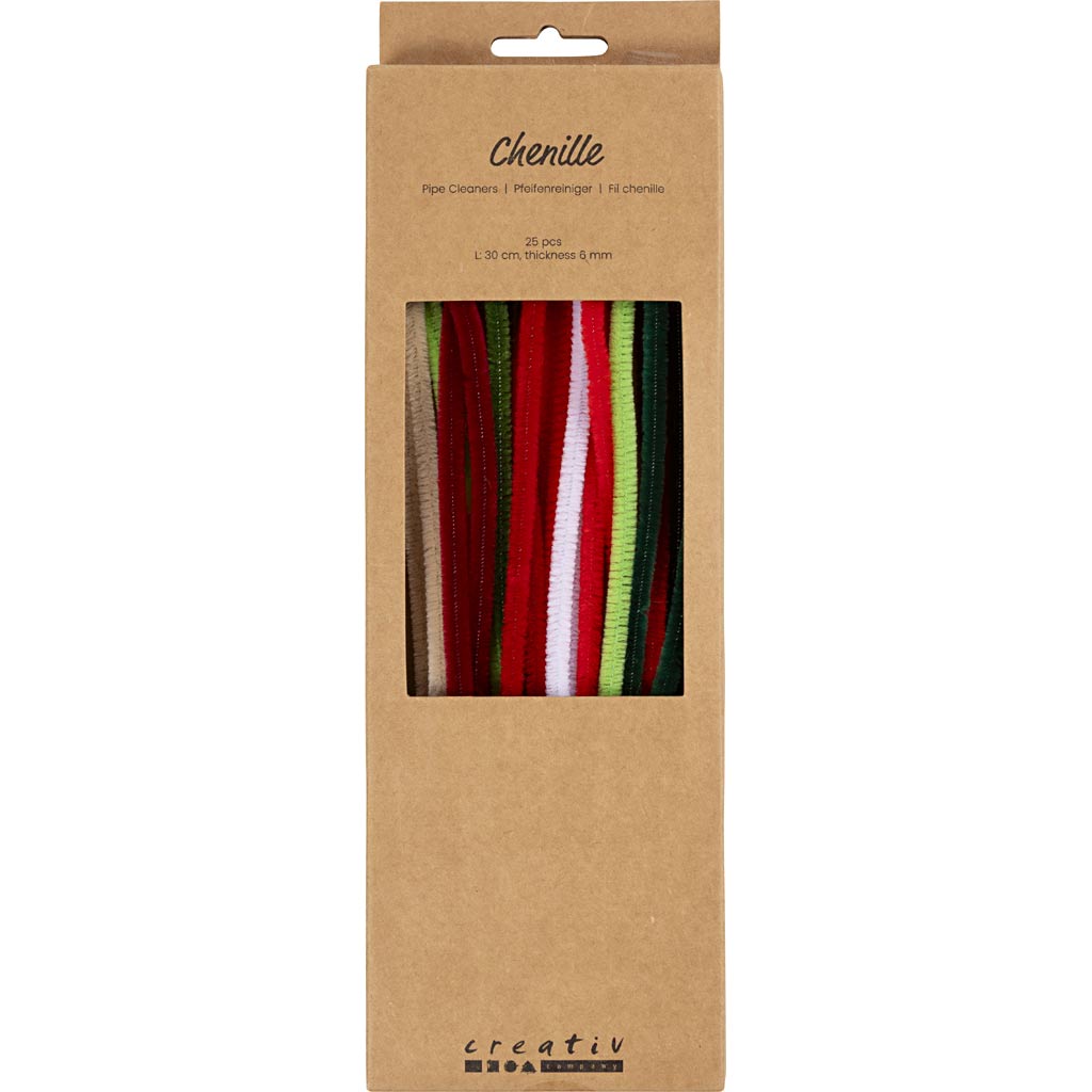 šenill, L: 30 cm, paksus 6 mm, jõuluvärvid, 25 tk / 1 pakk