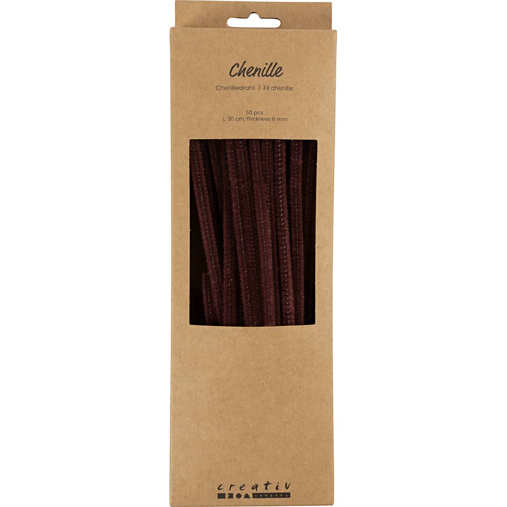 šenill, L: 30 cm, paksus 6 mm, pruun, 50 tk/ 1 pakk