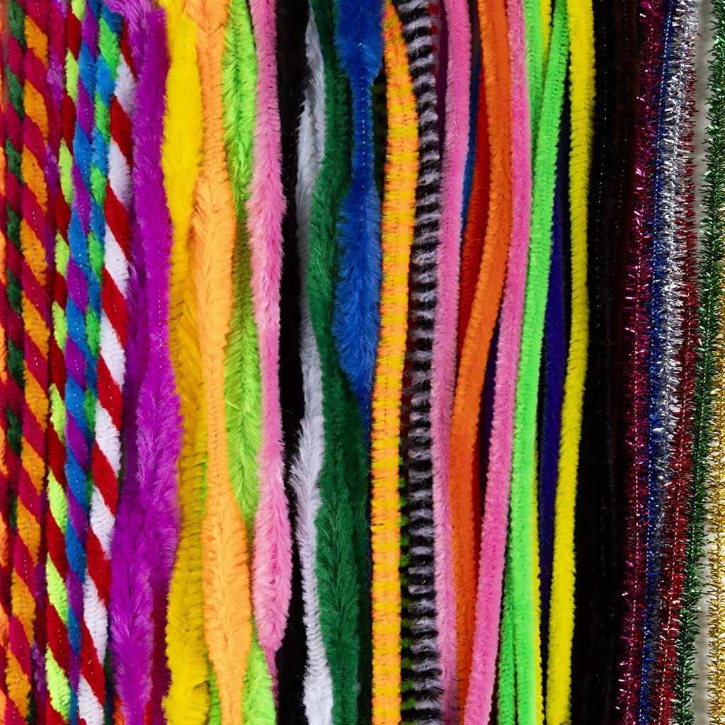 Tuntud ka kui torupuhastusvahendid, meie šenillvarred, millel on imeilusad jämedad nailonharjad, on suurepärased oma loovuse väljendamiseks. Šenill on ideaalne abivahend paljude loominguliste hobiprojektide jaoks
