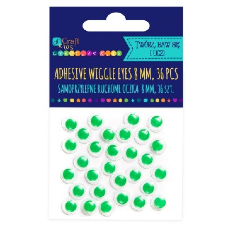 Silmad, kleebitavad, liikuvad, rohelised, 8mm, 36tk
