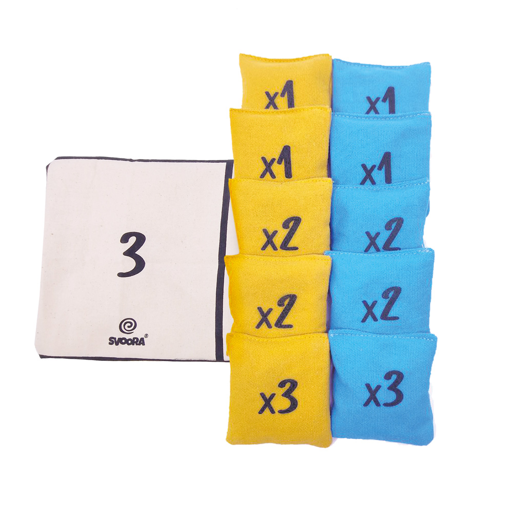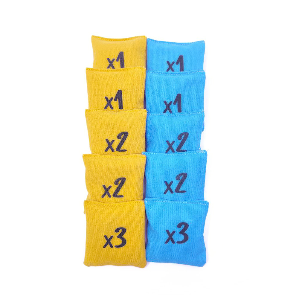 - Et teha mäng raskemaks, võid iga riidest välja maandunud kotikese eest lahutada 1 punkti või nii palju punkte, kui kotikesele on peale kirjutatud.