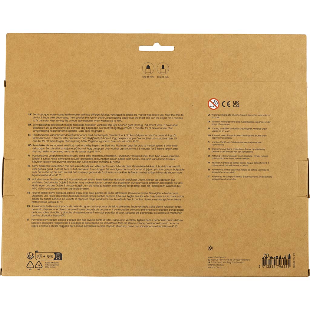 Tekstiilmarkerid, joon 2,3+3,6 mm, lisavärvid, 20 tk/ 1 pakk