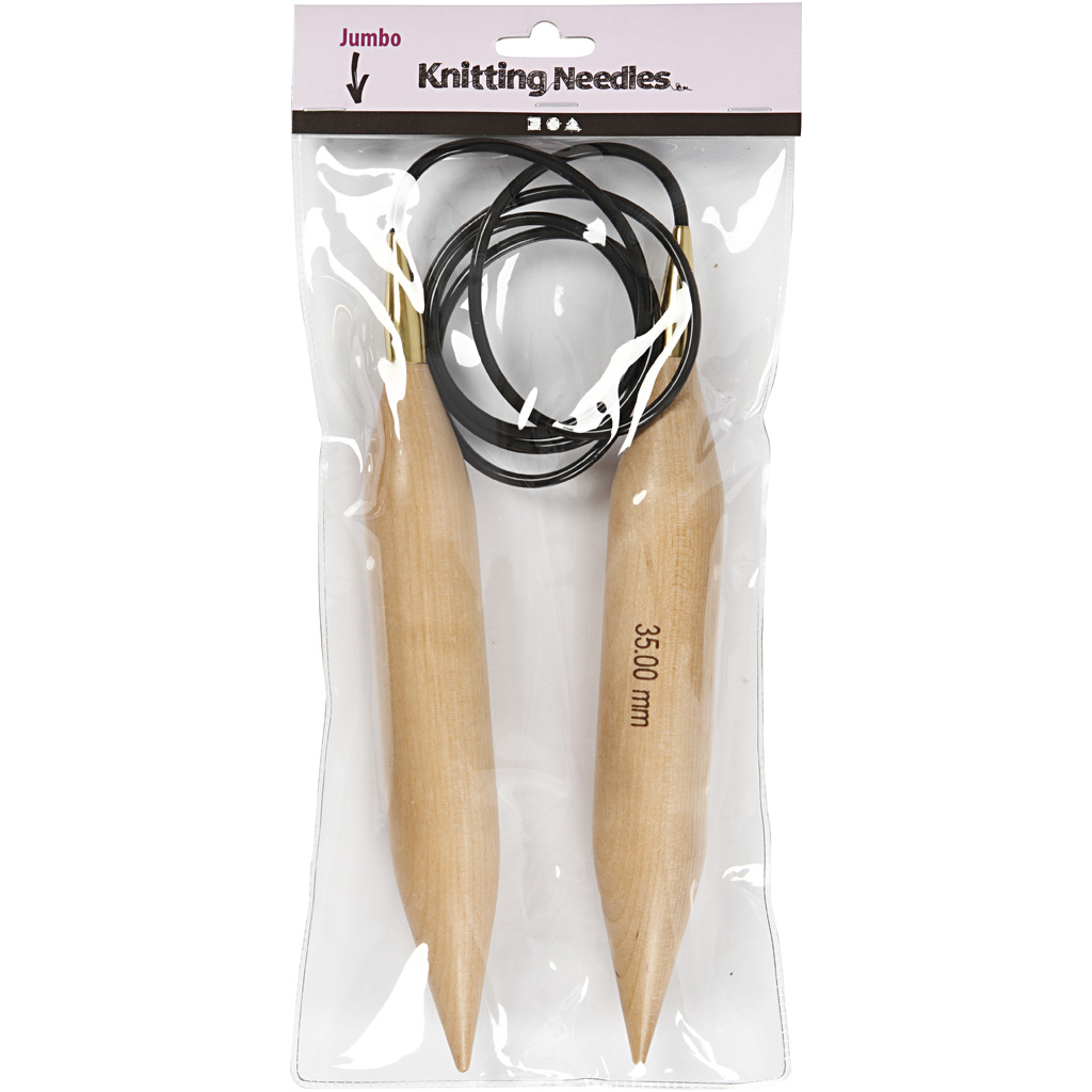 Väga suur ümmargune kudumisvarras, mis on valmistatud lakitud puidust