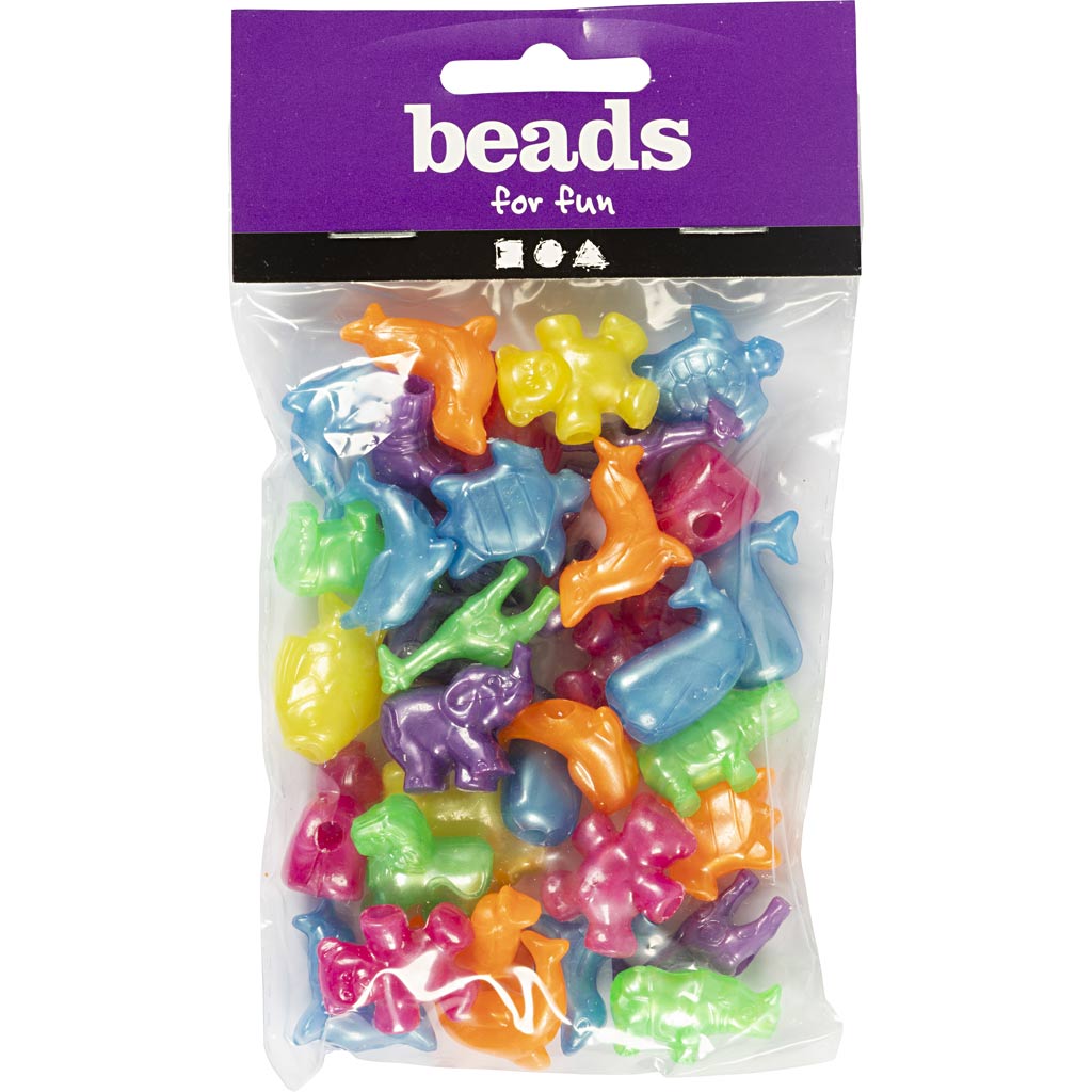 Erinevate värvide ja läikiva viimistlusega plastmassist helmeste sortiment.