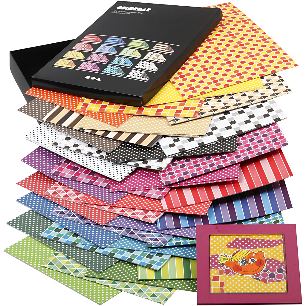 Värviribakaart, A4, leht 210×297 mm, 250 g, värvide valik, 16×10 lehte/ 1 pakk