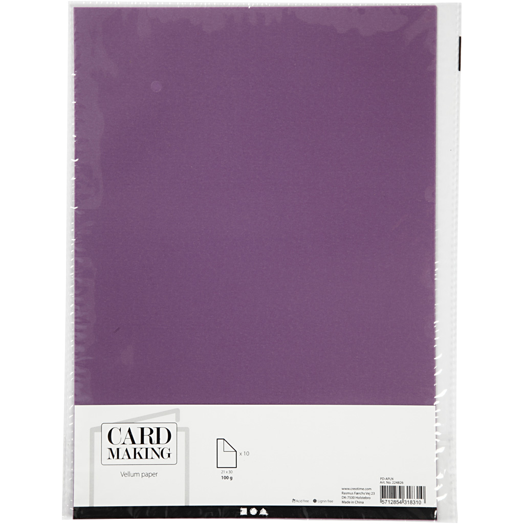 Vellum paber, A4, 210×297 mm, 100 g, lilla, 10 lehte/ 1 pakk