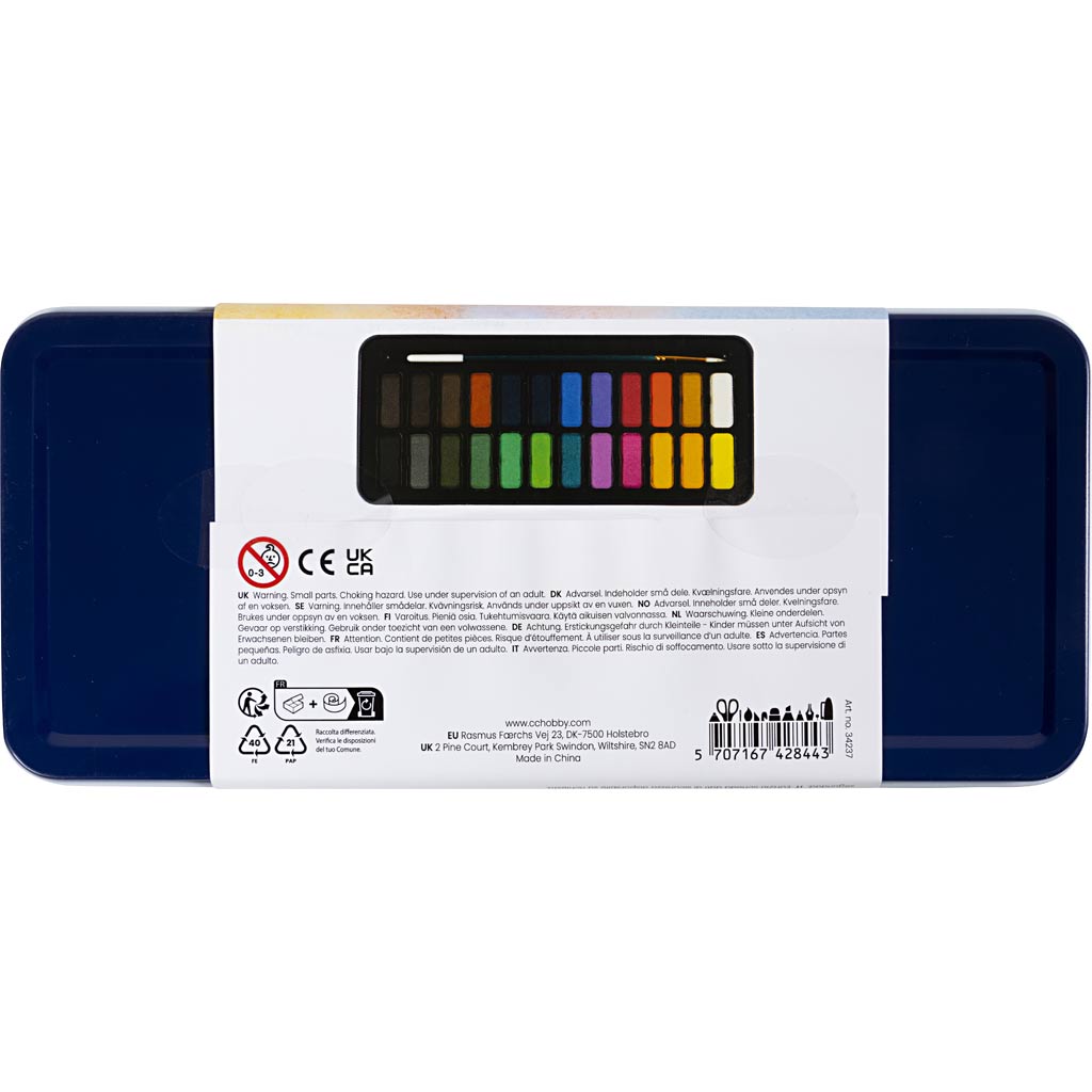Ilusad akvarellid kõrge pigmendisisaldusega. Kaasas pintsel ja kaas, mida saab kasutada segamispaletina. Ideaalne neile, kes armastavad maalida – ka teel olles.